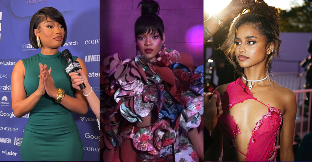 Then there’s Megan Thee Stallion, who turned New York streets into her runway. In a vibrant red ensemble topped with a whimsical hat sprouting apple leaves, she didn’t just rep the Big Apple—she became it. The Hot Girl Coach proved once again that she can do sexy, streetwear, and statement all in one breath.