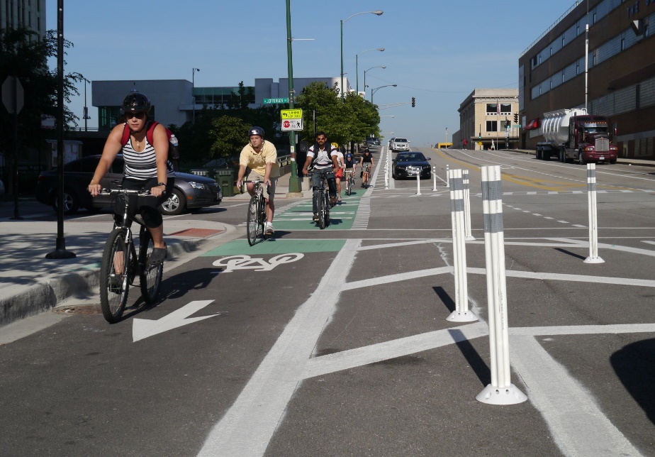 As part of ongoing pedestrinization efforts, The City of Detroit and MDOT are proposing a pilot project to add protected bike lanes on US-12 (Michigan Avenue) from Cass Avenue to Livernois. The change would connect the Livernois bike pathway and the planned Cass Avenue bike path. Existing bike lanes adjacent to motor vehicle travel lanes would be moved inside the parking lane to allow bike riders to travel next to the curb. Areas without bike lanes would be added.