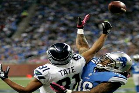 LIONS JONTE Green (#36) knocks Golden Tate off the ball. – Andre Smith photo