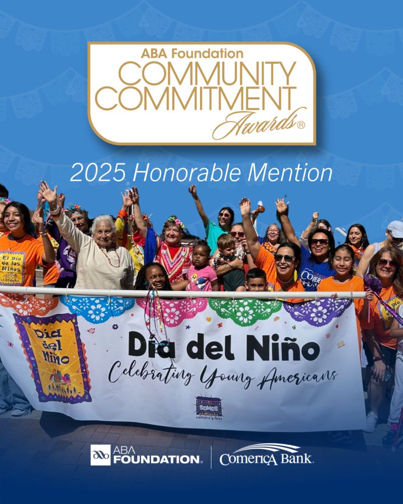 Comerica Bank was recently recognized by the ABA Foundation with an Honorable Mention for Volunteerism in their Community Commitment Awards for Día de los Niños celebrations.
