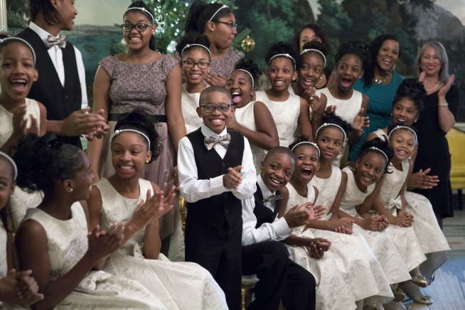 The choir also performed Stevie Wonder’s holiday hit, “What Christmas Means to Me” in a private performance for President and First Lady Obama in the Diplomatic Reception Room of the White House and was given a photo opportunity.