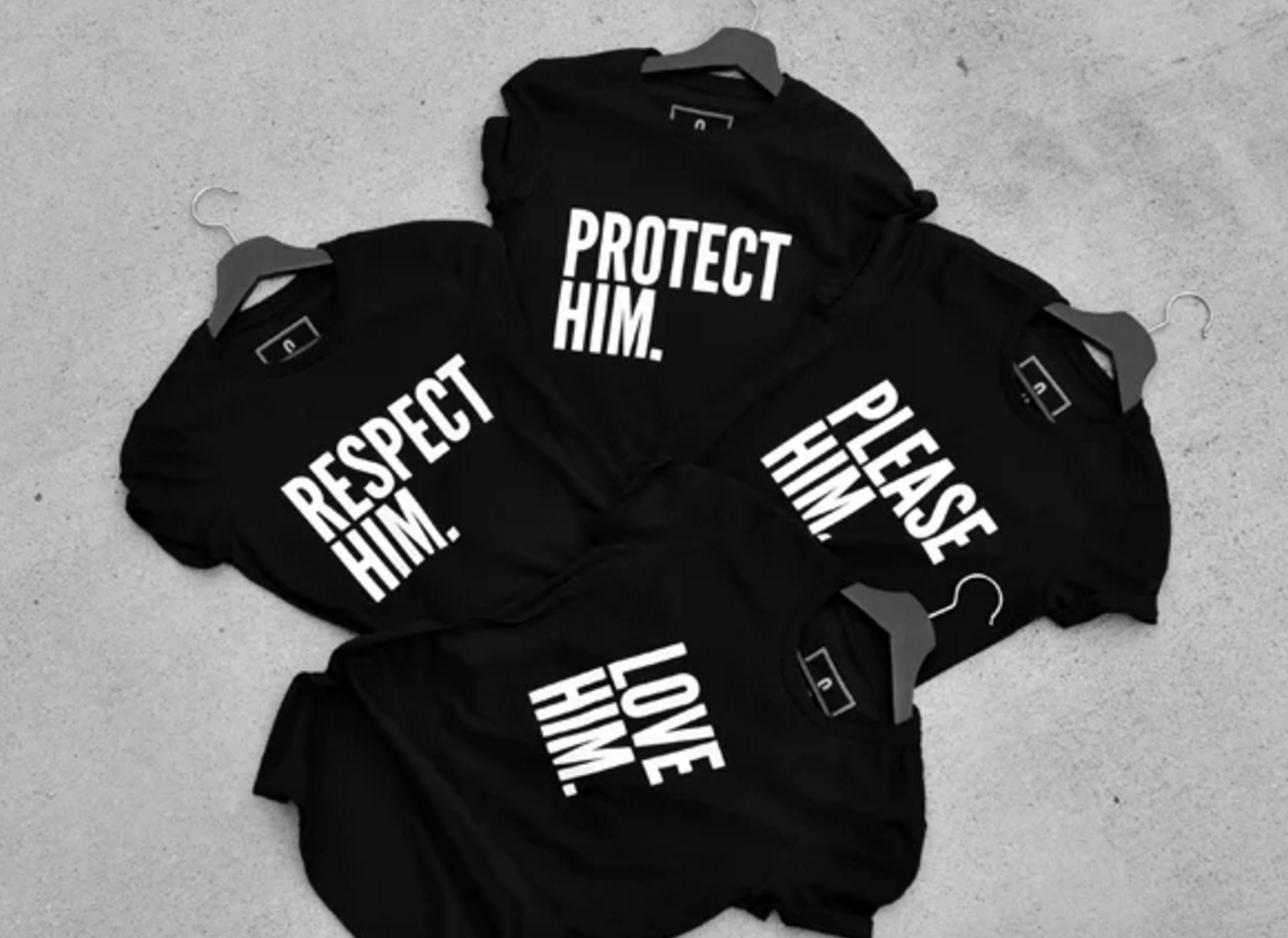 DSE Detroit: FO(U)R HIM: Protect Him. Love Him. Please Him. Respect Him. Hand printed on 100% ringspun cotton shirts. Side seam fit. Each piece is printed in Detroit, MI, USA. $25