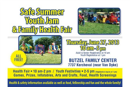 Kick off a safe and healthy summer at the Safe Summer Youth Jam and Family Health Fair, presented by the Detroit Recreation Department, on Thursday, June 27, from 10 a.m. to 5 p.m. at Butzel Family Center, 7737 Kercheval. Adult and senior registration is at 10 a.m. Senior health screenings are from 10 a.m. – 2 p.m. Youth registration begins at 1 p.m. Youth activities are from 2-5 p.m.