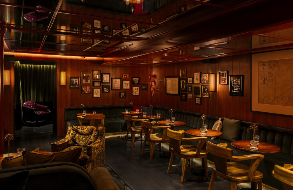 Ambiance is the star. The room is a moody 5-star jewel box—dark cherry wood, deep green velvet, lacquered paneling, warm brass, and perfectly dim lighting that flatters everyone and everything. It’s ideal for date nights, a pre-game with flair, or a solo reset at the bar. Seating is intentionally tight and intimate, so save the large-party energy for another venue.