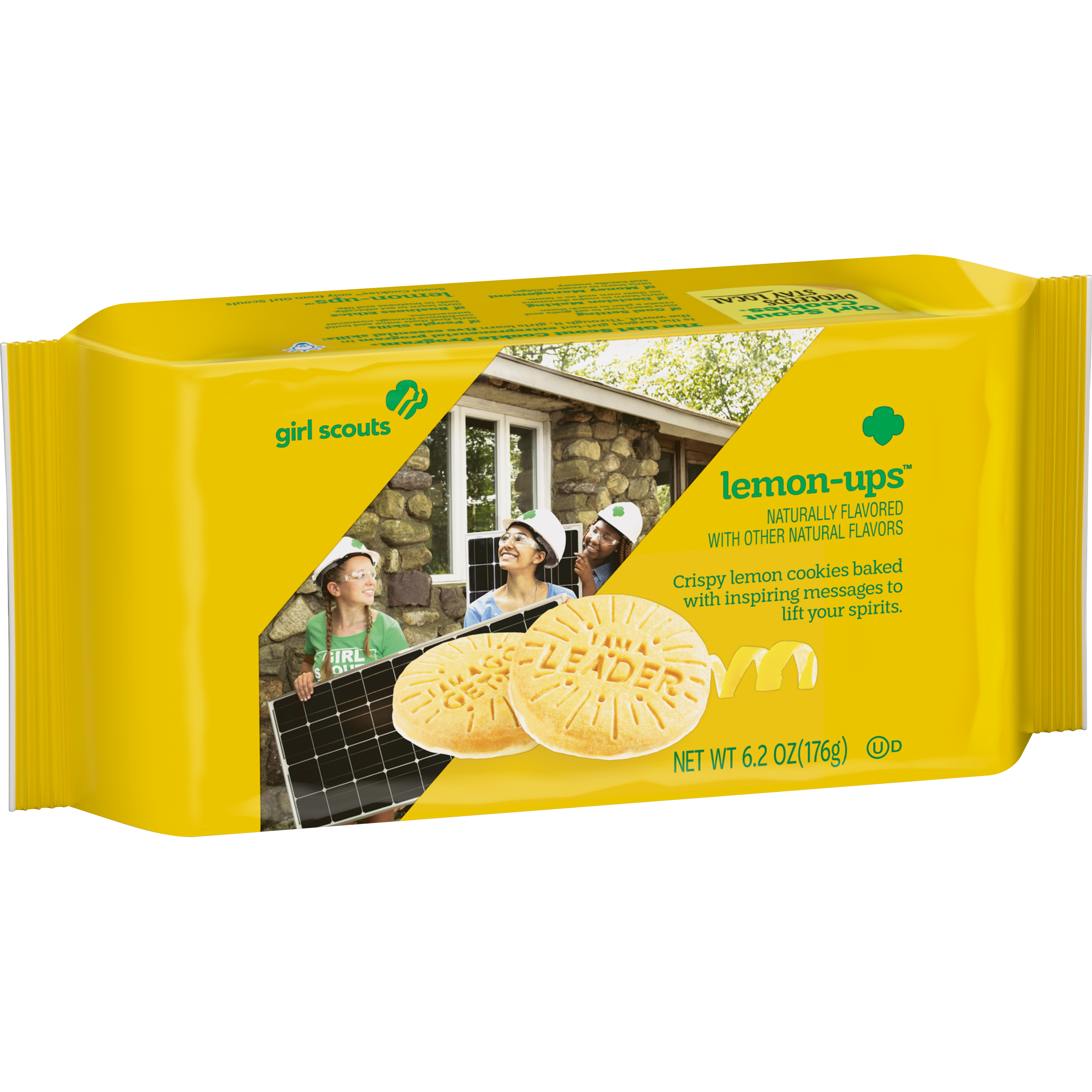 Lemon-Ups are delightfully light and crispy lemon cookies stamped with “I AM,” followed by one of eight real traits that characterize today’s Girl Scouts. Each box of Lemon-Ups reinforces that Girl Scouts are “bold,” “creative,” “go-getter,” “gutsy,” ‘innovator,” “leader,” “strong,” and “risk-taker.”
