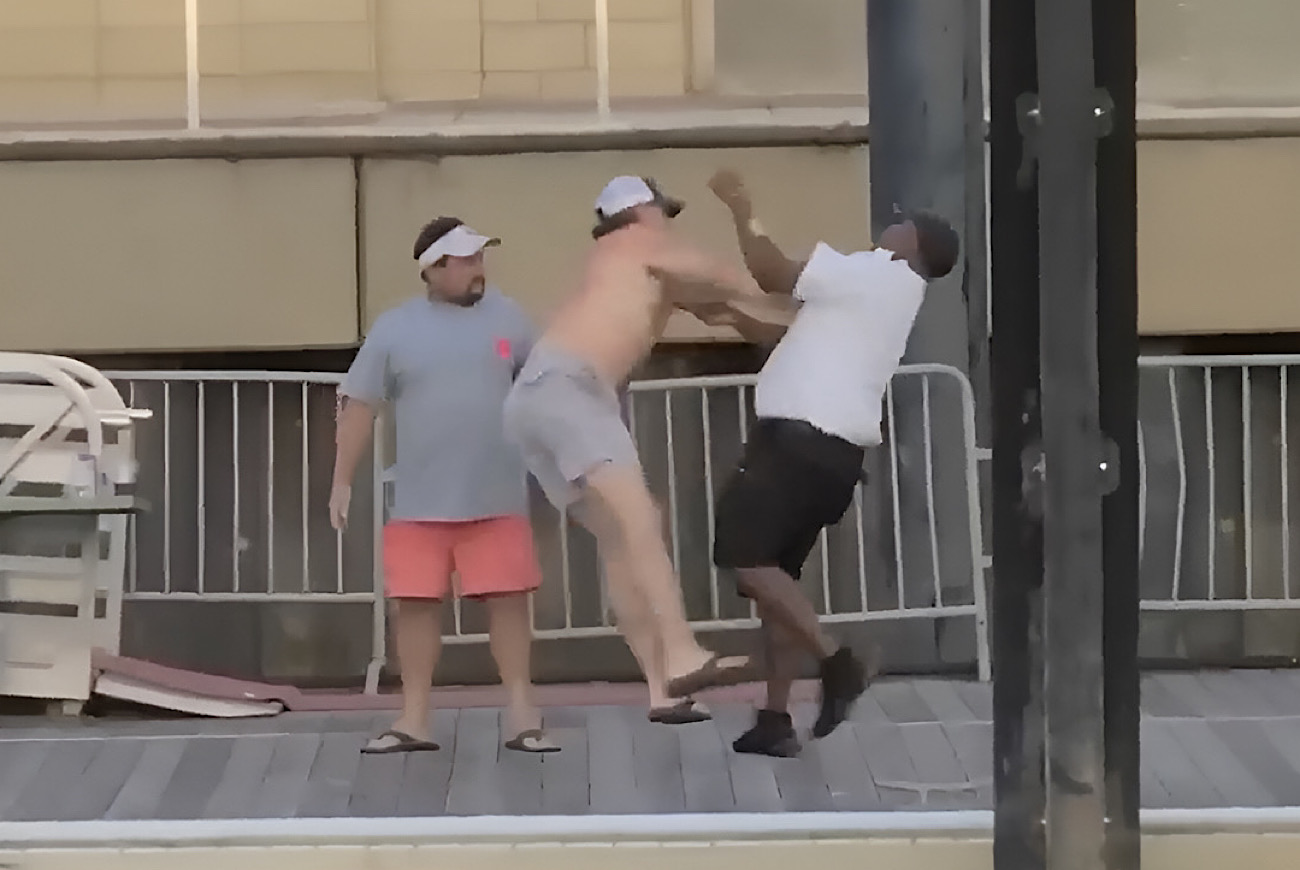 Over the weekend, the fight began after a disagreement over a pontoon boat that was docked illegally. A Black male, who appeared to be a security guard, attempted to get the owners of the pontoon, who were white, to move the boat so that the riverboat could dock.