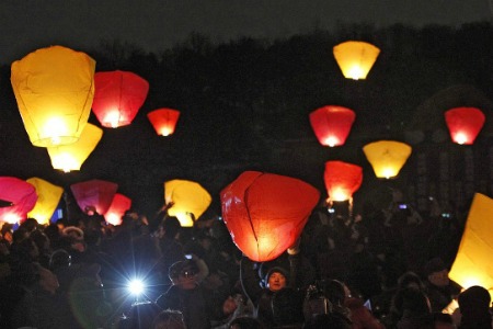 On November 24, at Cass and Peterboro, Detroit’s Chinatown, 100 Flying Paper Lanterns were launched into the sky. Flying lanterns were first used during the third century in China as a signal during battles, but eventually came to be used in festivals to signify good luck and new beginnings. The event was organized by Bianca Ibarlucea, a Wayne State University Junior, for a class led by visiting artist Fritz Haeg and sculpture professor Eric Troffkin.