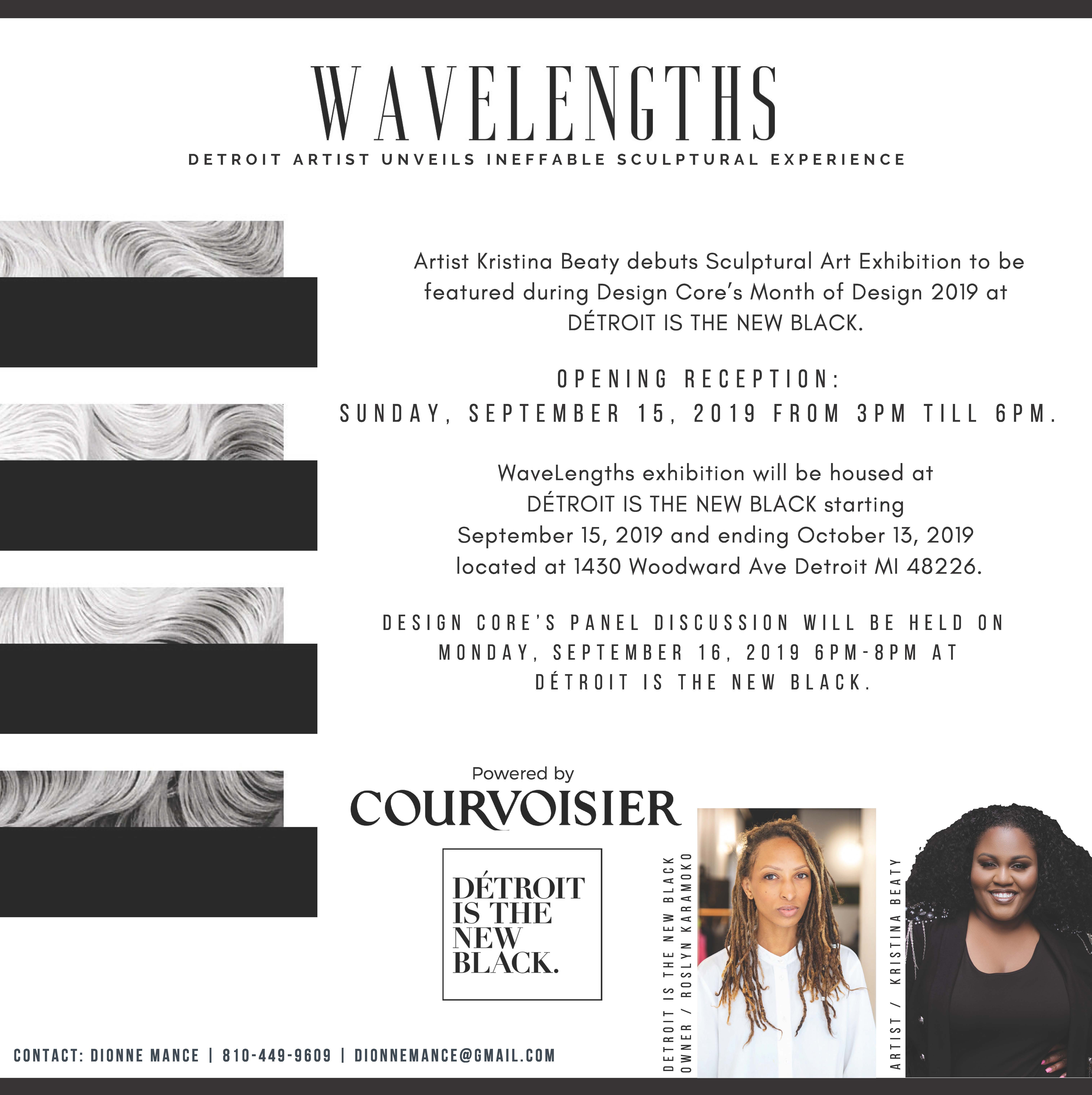 Beaty: WAVELENGTHS is a Sculptural Art Exhibition intergrading hair and design. The opening reception is September 15th 3-6pm at Détroit Is The New Black, and it will be housed in the space for a month. I am debuting 6 hair sculptures to complement the space, all of which will be adorned with my signature Glam Wave.
