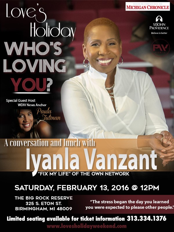 On February 13, 2016 from 12pm – 3pm at Big Rock (The Reserve) 325 S. Eaton St. in Birmingham, Michigan. Enjoy Iyanla Vanzant in an intimate sitting at Big Rock inside The Reserve! The Big Rock Reserve has a host of conveniences such as valet parking, award-winning menus and state-of-the-art audio and video capabilities, renowned four-star restaurant and exquisite banquet facility.