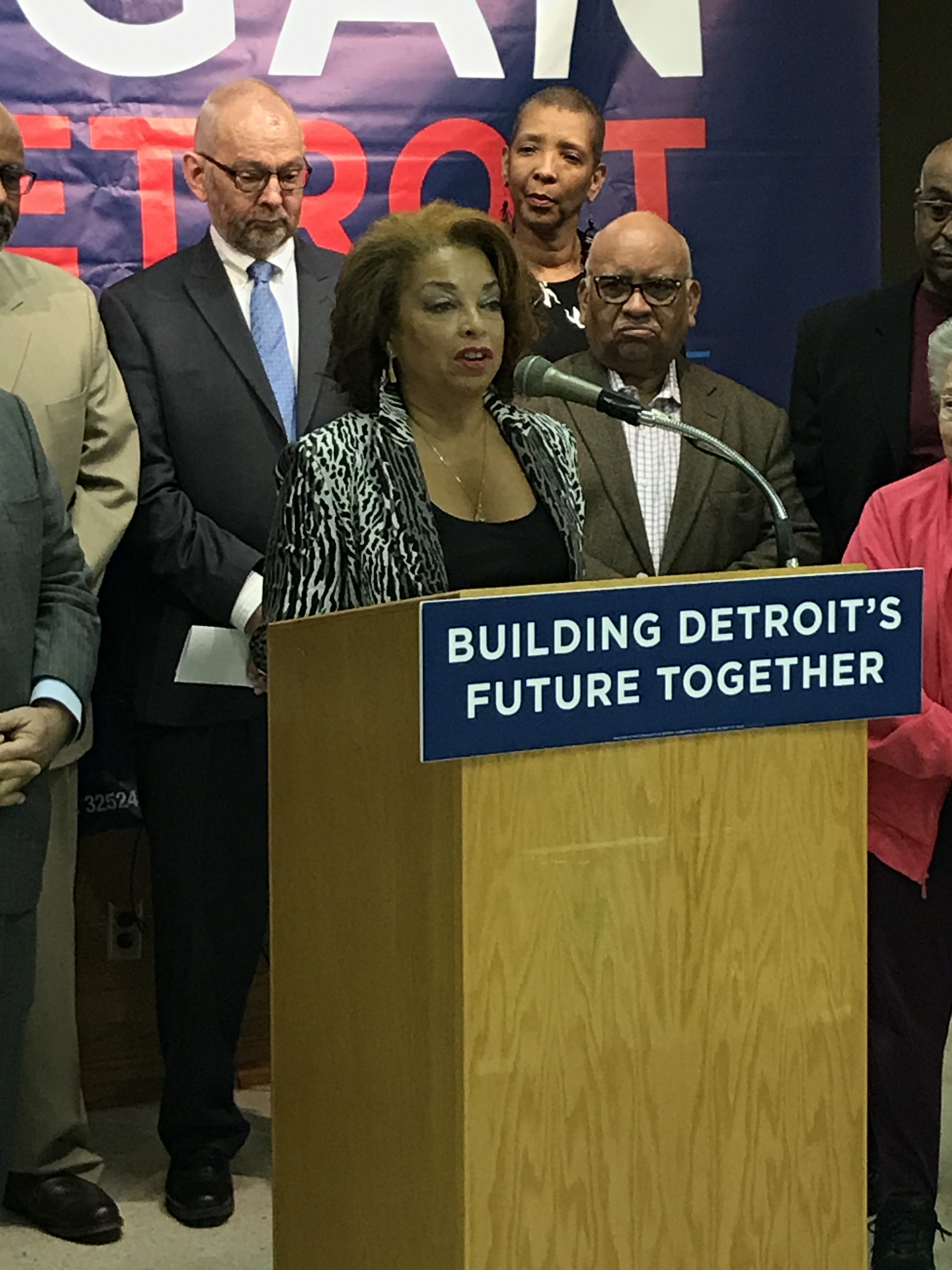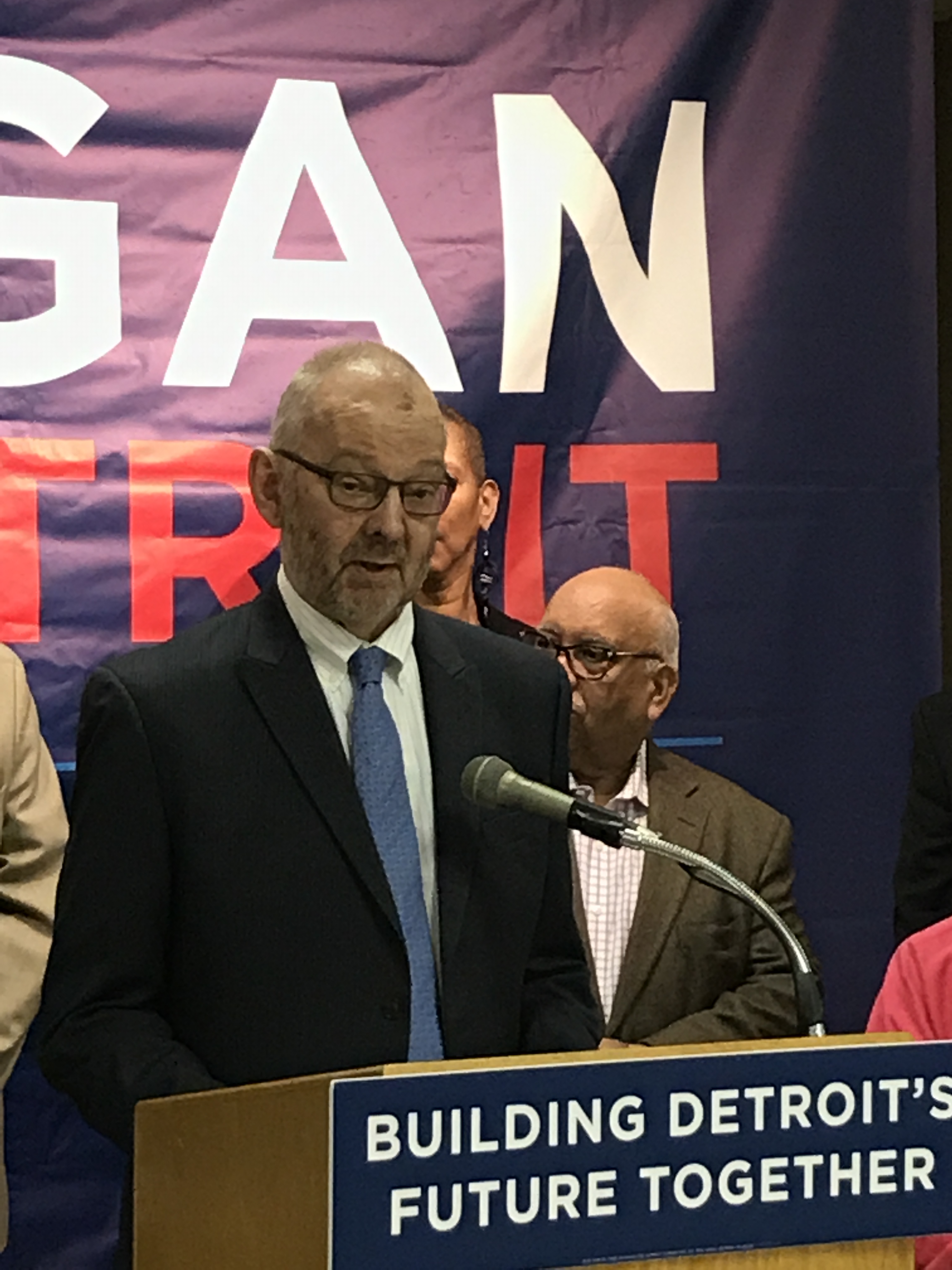 “This is a group of people who have tremendous experience and tremendous demonstrated commitment to the City of Detroit. And we are joined by numerous of our colleagues who were not able to be here, but who have lent their support to endorse and see Mike Duggan re-elected to the office of Mayor of the City of Detroit. I am really privileged to say my family has been in the City of Detroit 100 years, and we have owned property that is no in what in what is known as Midtown. It wasn’t always that. We have owned property and seen it go down and now come up. And it is that resurgence that we see continuing … because of the focus and strategic development effort of this man.