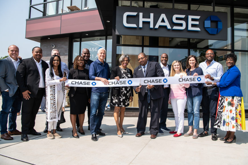 On Thursday, August 5, Chase held a grand opening of its first Community Center branch in Detroit on 1620 Michigan Ave, complete with a ribbon-cutting ceremony on the bustling street corner in front of the business.