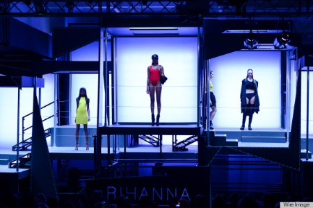 Rihanna’s River Island collection debuted at Fashion Week in London, and received terrible reviews, with critics calling the runway show a “Horror Show”. The River Island show was not originally apart of Fashion Week, making the fact Rihanna was an hour late for a nine minute show simply appalling. And while her entrance was banging (she opened with Jay-Z and Kanye West’s “My Clique”), the outfits were trashy lingerie at best. Her collection featured nipple baring, mesh get-ups and questionable bras, that Huffington Post called “a wardrobe malfunction waiting to happen”.
