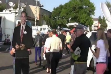 Thousands of people attended the Romney/Ryan rally at the Wings Over the Rockies Air and Space Museum in Denver, Colorado when they spotted the cut-out of Obama on their way in and began insulting it, KDVR reported.