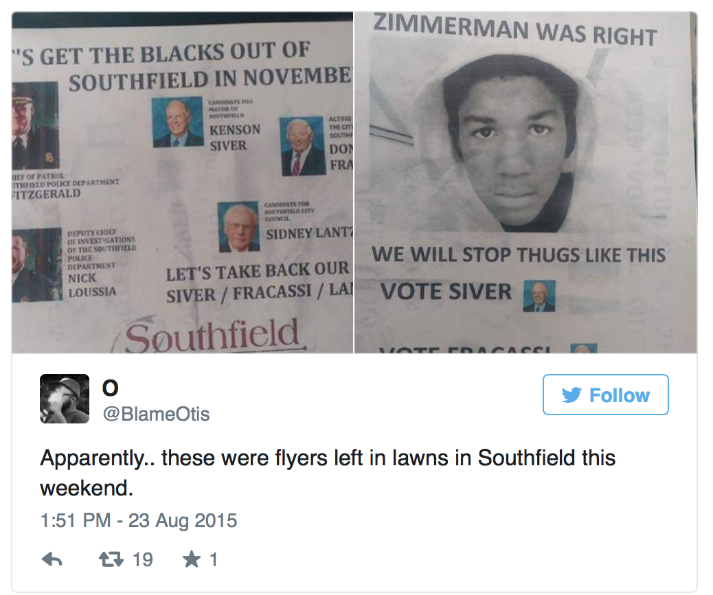 This week, Southfield residents were targets of racist propaganda from an unknown source. The fliers left in homes front yards and mailboxes read “Let’s get the blacks out of Southfield in November” and “let’s take back our city,” which was printed at the bottom.