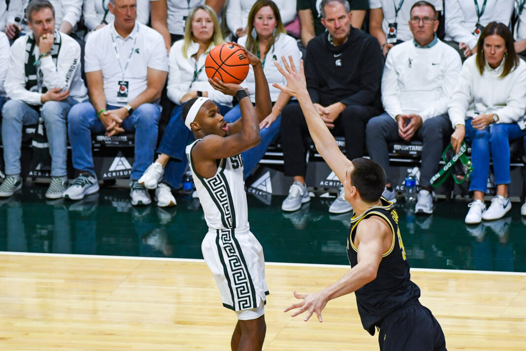 With the first basket of the game by State followed by two triples by MSU’s Jaden Akins after a three point play by Michigan to get on the board, it was the Spartans jumping out in front early 8-3. Akins, playing in his last game as a senior at Breslin, made his presence known during the first seven minutes of the game, connecting on another shot from behind the arc later to extend Michigan State’s lead to 18-6.