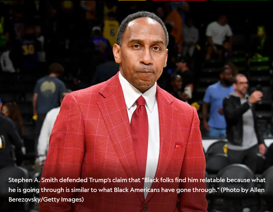 Stephen A. Smith has apologized for remarks last week suggesting that Trump was receiving support from the Black community because we relate to his legal woes.
