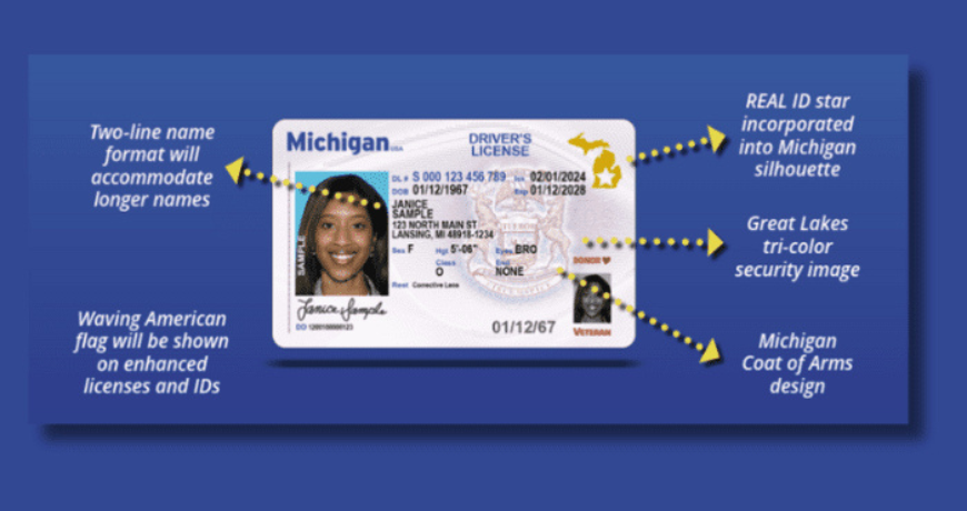 The state’s updated design replaces that symbol with a star inside the outline of Michigan. TSA accepts both versions.