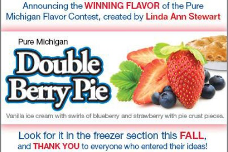 More than 7,000 flavor suggestions were submitted during the course of the two weeks to determine the next great Pure Michigan ice cream flavor. Other flavors submitted included Michigan Chardonnay Cherry Fudge, Pure Maple Syrup Sunday and Pictured Rocks Swirl. Pure Michigan Double Berry Pie was chosen as the winning flavor by Hudsonville based on its inclusion of Michigan produce and unique flavor combination.